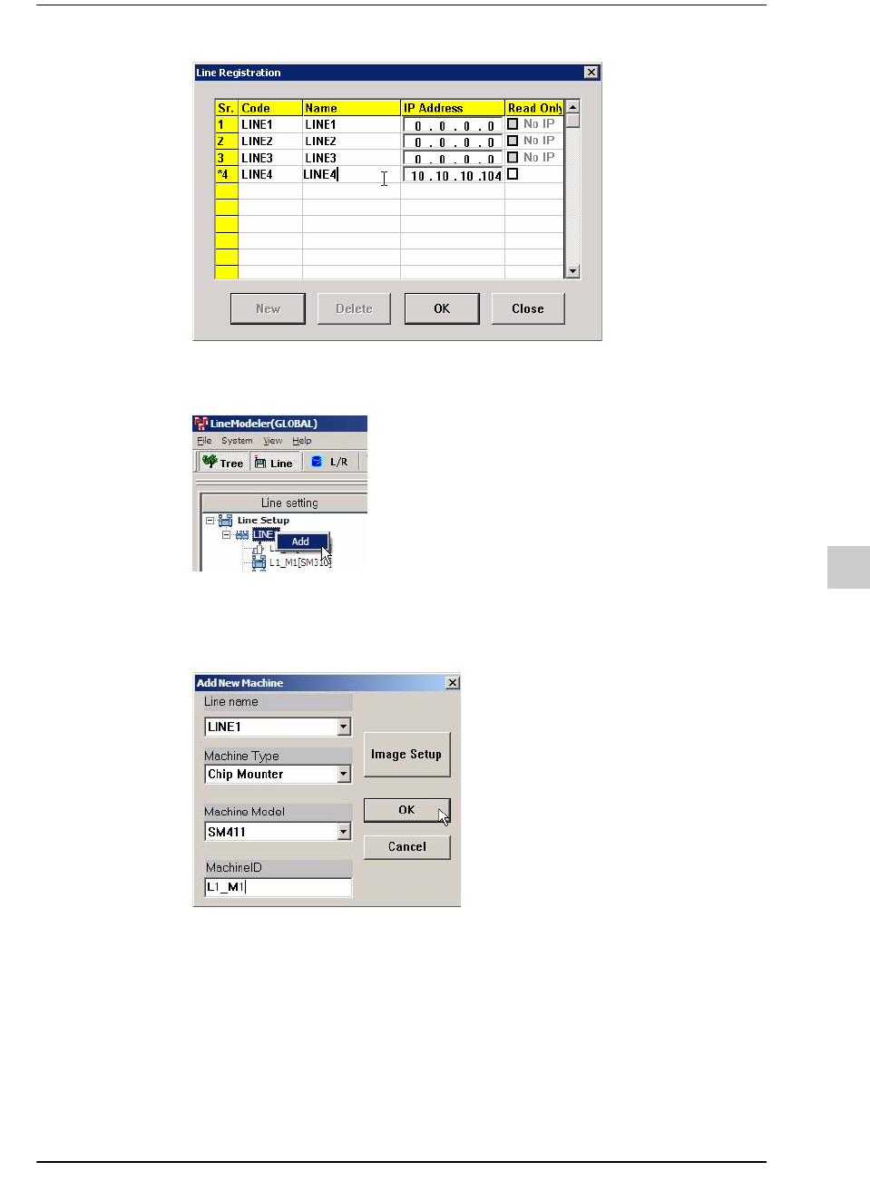 STEP3. 登记构成作业线时所需要的设备。选择需要添加设备的作业线后按鼠标