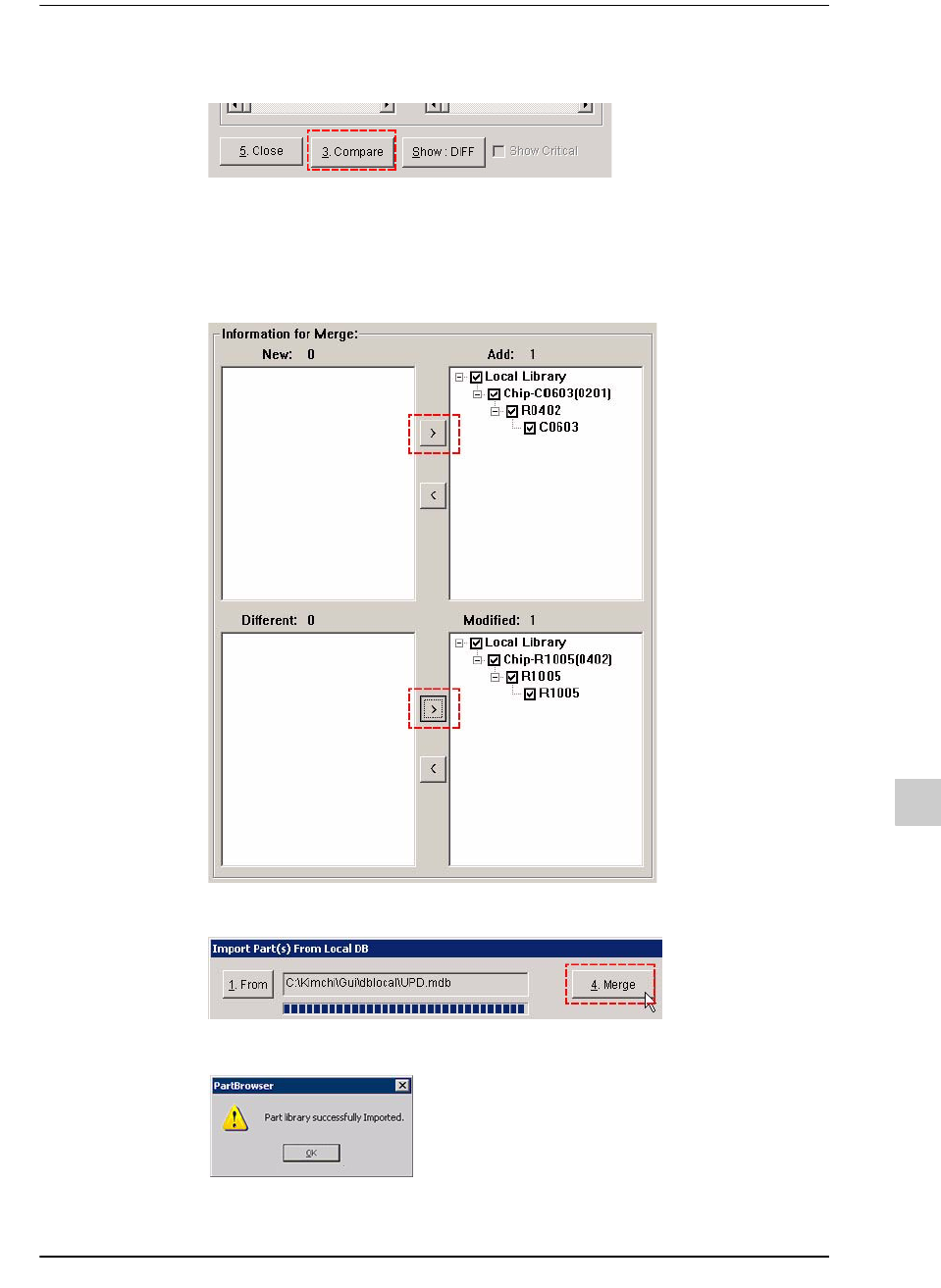 STEP5. 在Import Part(s) From Local DB对话框单击<Compare>键。