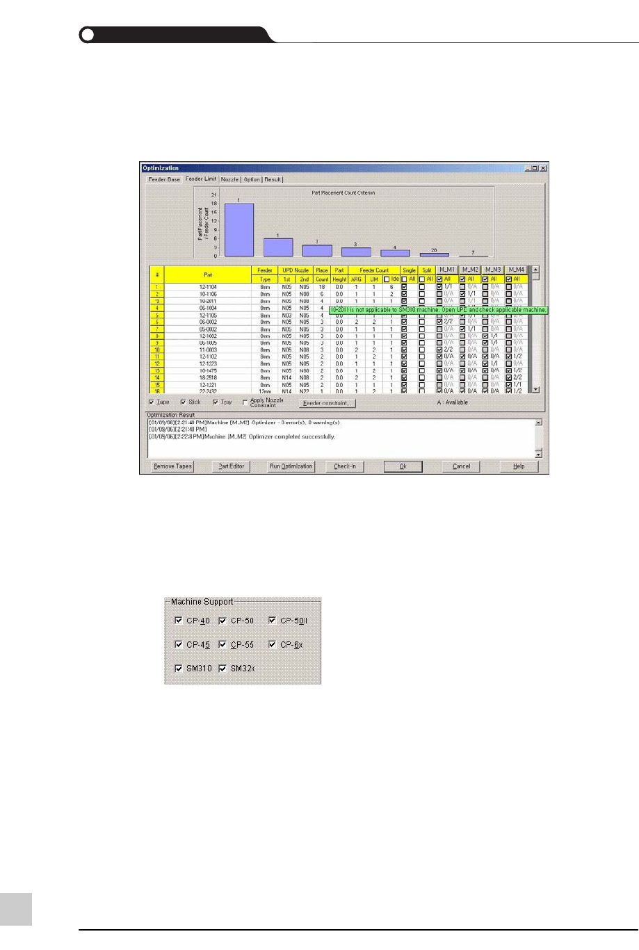 27-1 Chapter 27 C h a p t e r 2 7 . Technical Notes 本章针对使用 EasyOLP 时常见的疑难问题提出了解决方法。 27.1. Optimization 时关于设备与元件指定问题的解决方法 在 EasyOLP 创建工作台后进行优化 (Optimization) 时, 可能出现无法把特定元件指定 给特定设备的情况。 其原因在于, 为了高效率地进行作业线均衡化、 以及根据摄影机与喂料器等设…