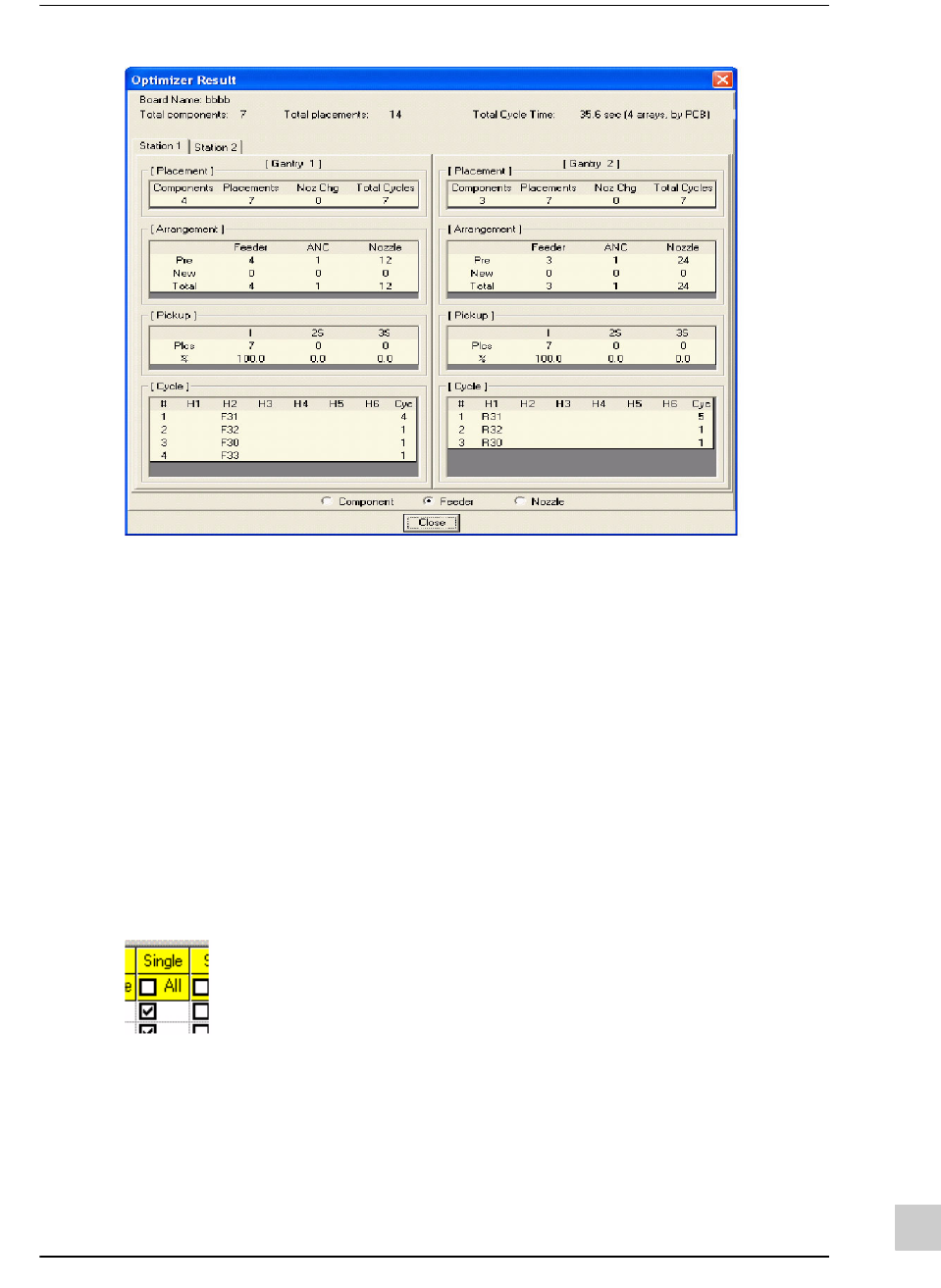 即使喂料器数量范围显示为1,如果没有圈选Single栏目的复选框,则只要把该元件
