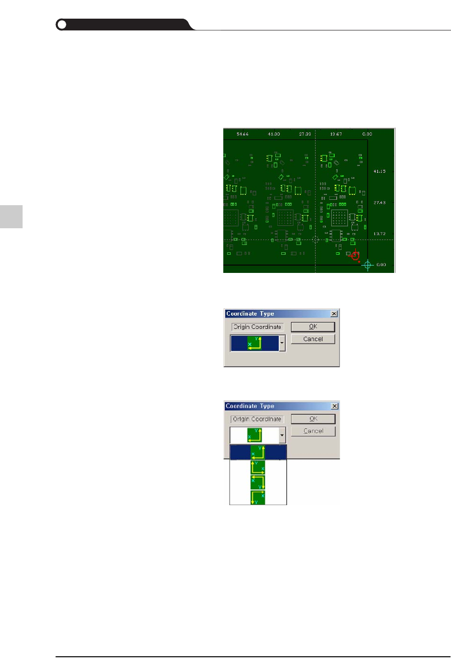 9-52 lvswG}] lvswG}] 9.5.9. Board Stop 指定板子定位挡片 (Board S top) 的位置。 板子定位挡片的意义请参阅 [9.5.8. Origin, 第 9-50 页 ] 当 读入 (I mport) 含有 Placement Origin Offset 值的 PCB 文件时, 不必另外指定板子定 位挡片的位置。 by Point 把特定点设定为坐标原点。 移动鼠标指针后单击特定点,…