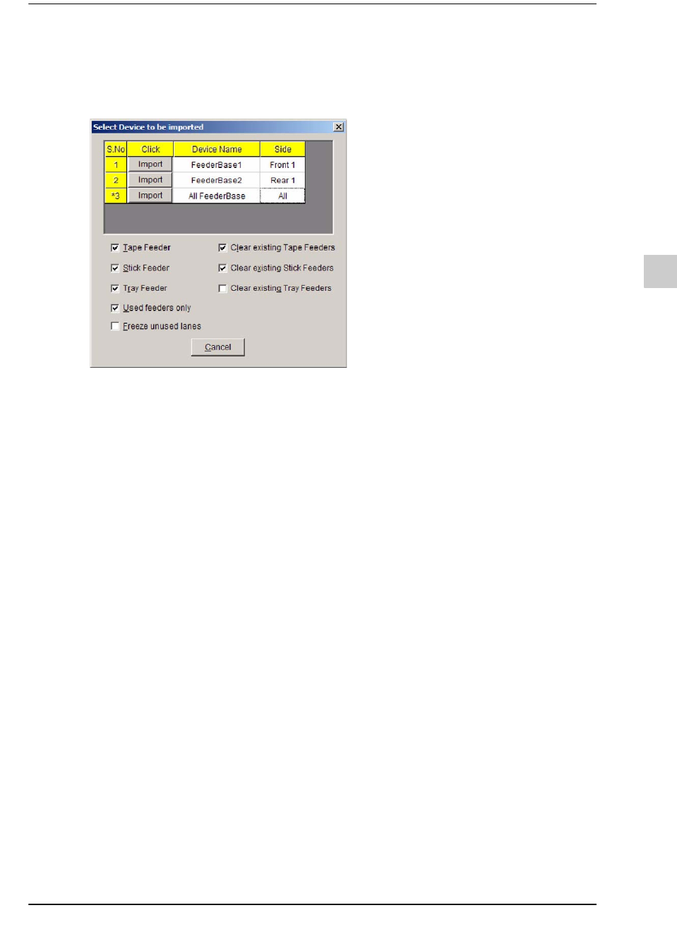 单击最后一行的Import,就能读入一切喂料器底座的信息。