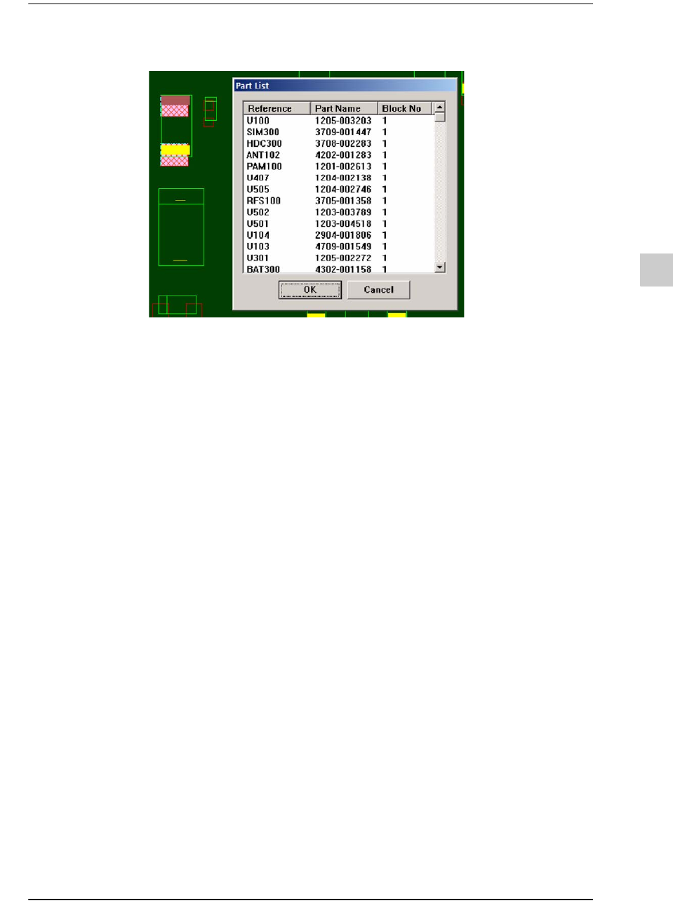 Figure9.25 Part list dialog in Gerber