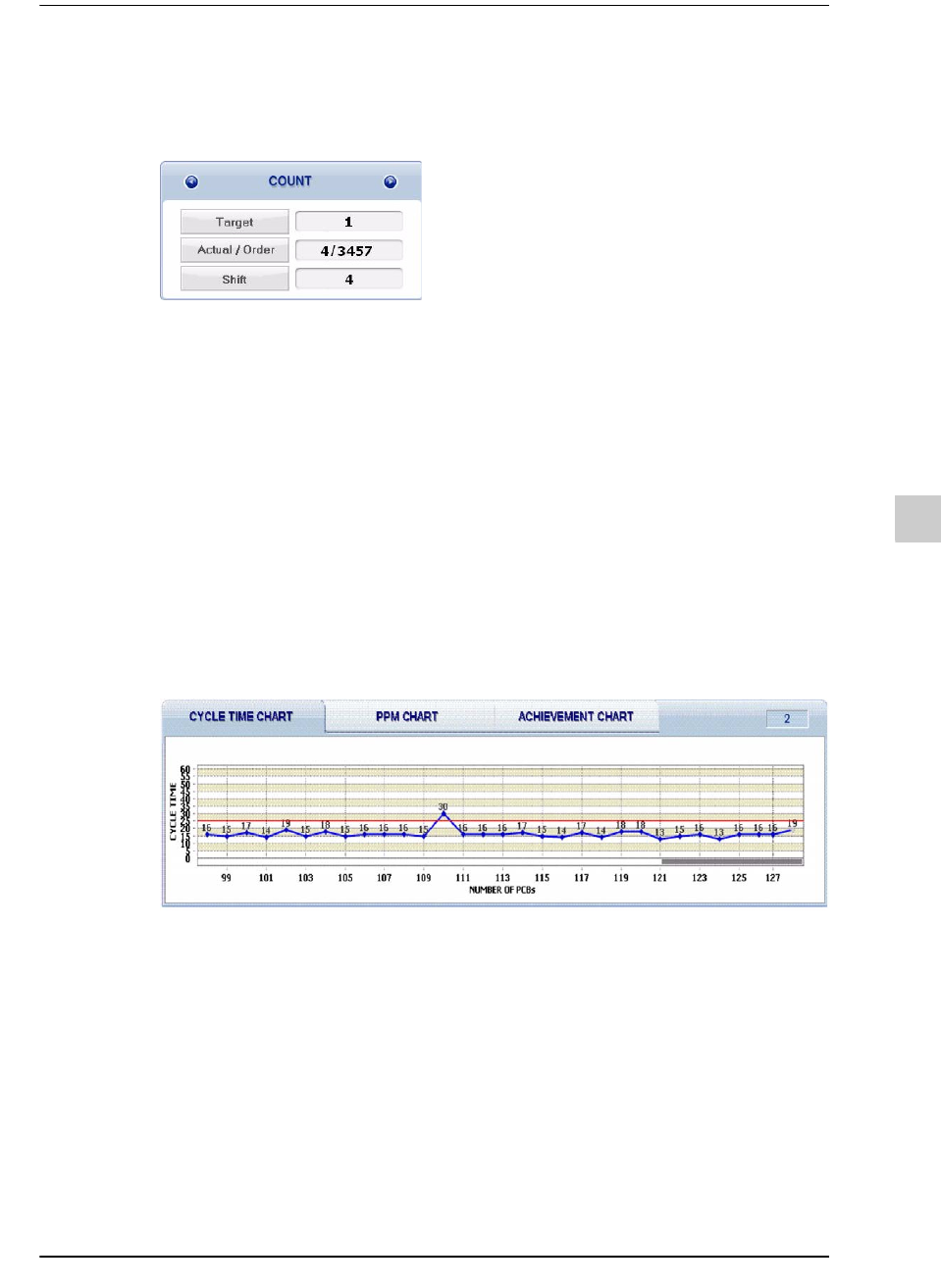 Achievement chart显示了相对于目标生产量的当前生产现况(目标实现率)。