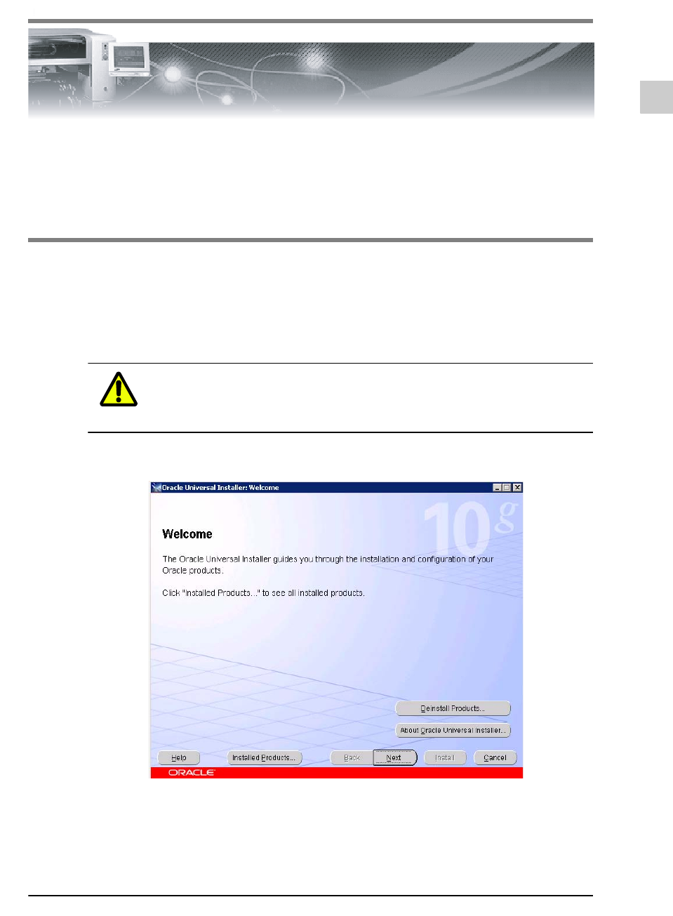 4-1 Chapter 4 C h a p t e r 4 . 甲骨文 10G 客户端的安装 使用 MLM(Multi Line Monitoring) 是必须具备甲骨文 (Oracle) 数据库及甲骨文客户 端。 没有安装 MLM 的客户不必安装甲骨文数据库及客户端。 注意 使用 SLM 而没有安装甲骨文的情形下, 如果为了使用 MLM 而安 装了甲骨文数据库时, 将无法保存先前的数据。 STEP1. 在甲骨文客户端 CD 选择 “S…