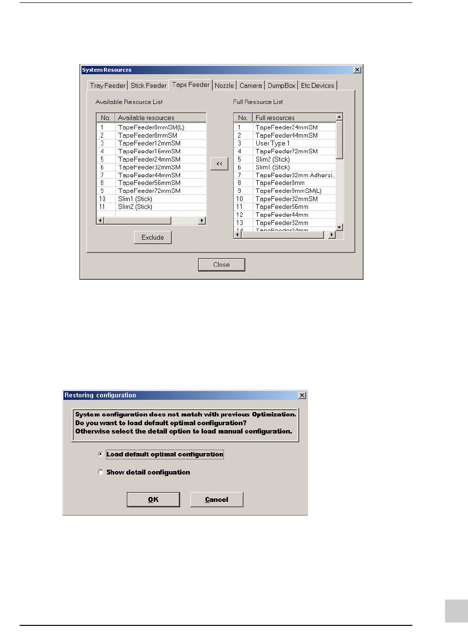 5) 在System Resource对话框的Tape Feeder选项卡检查Available Resource List上是