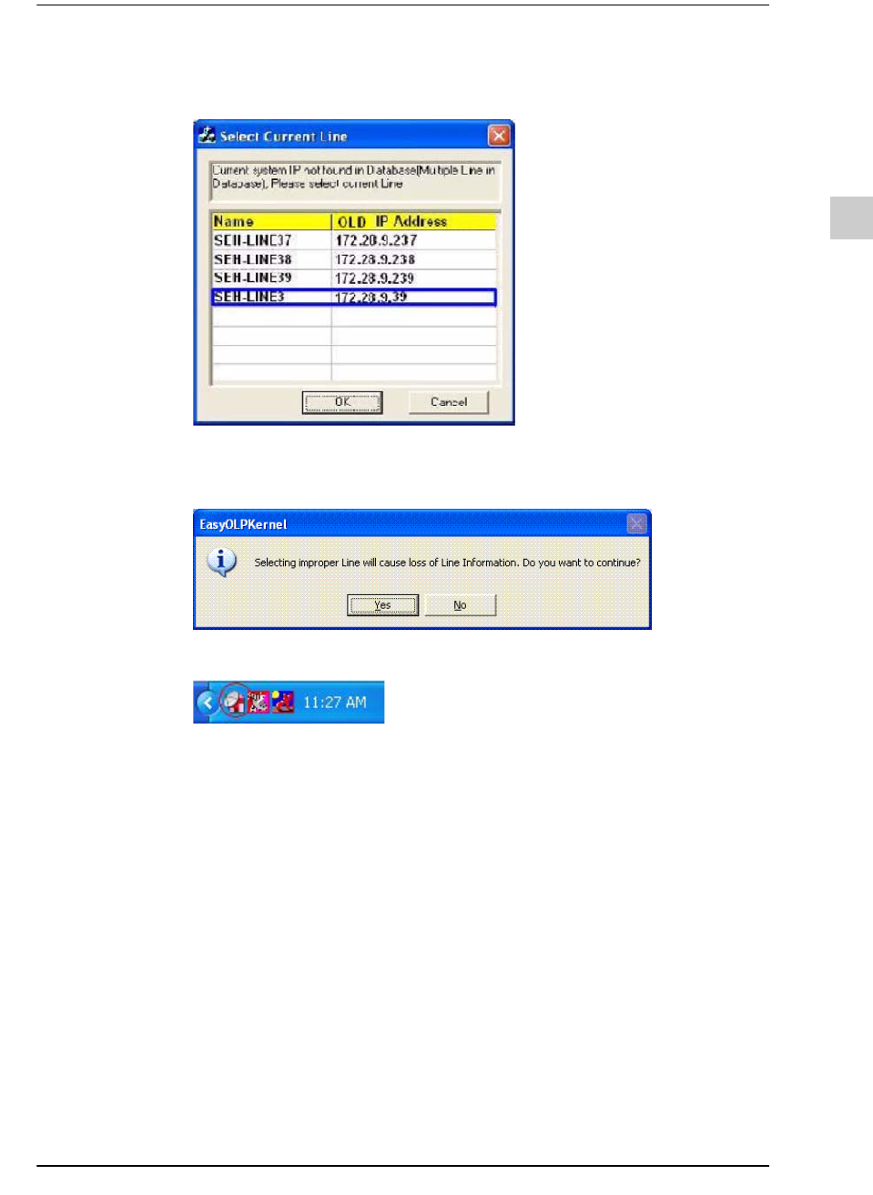 STEP6. 选择一个Line后单击 <OK>键,将弹出下列提示内容。