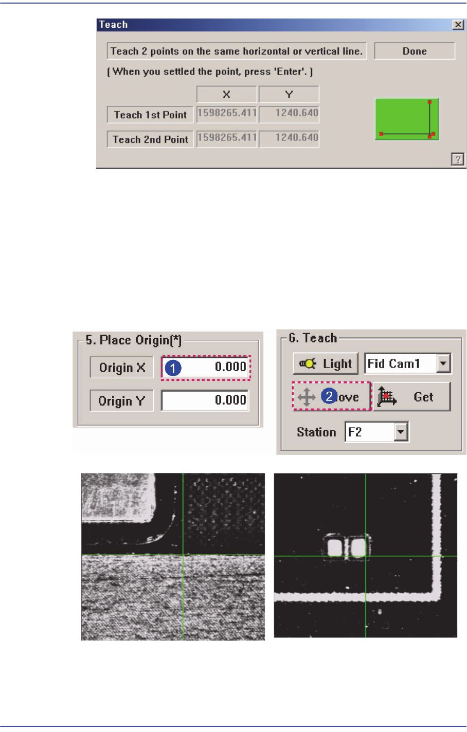 의 동일한 점으로 판단되는2점을 티칭하여 초