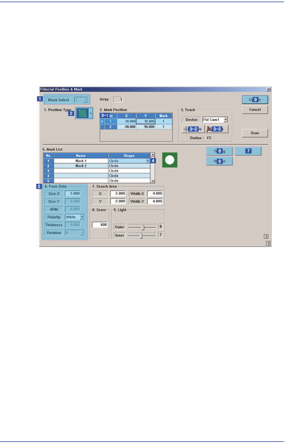 터를 저장하고 “Fiducial Position & Mark” 대화상자를 닫습니