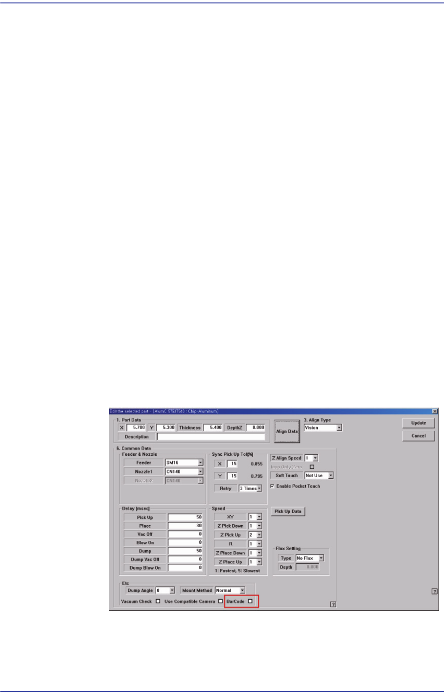 6-39 Board 정의 설정을 합니다 . <Array> 콤보박스 현재 선택된 Array 의 번호가 표시됩니다 . <X/Y/Z> 에디트박스 <Board> 영역의 해당 내용을 참조 하십시오 . <Inspection> 체크박스 <Board> 영역의 해당 내용을 참조 하십시오 . <Placing> 체크박스 <Boa…