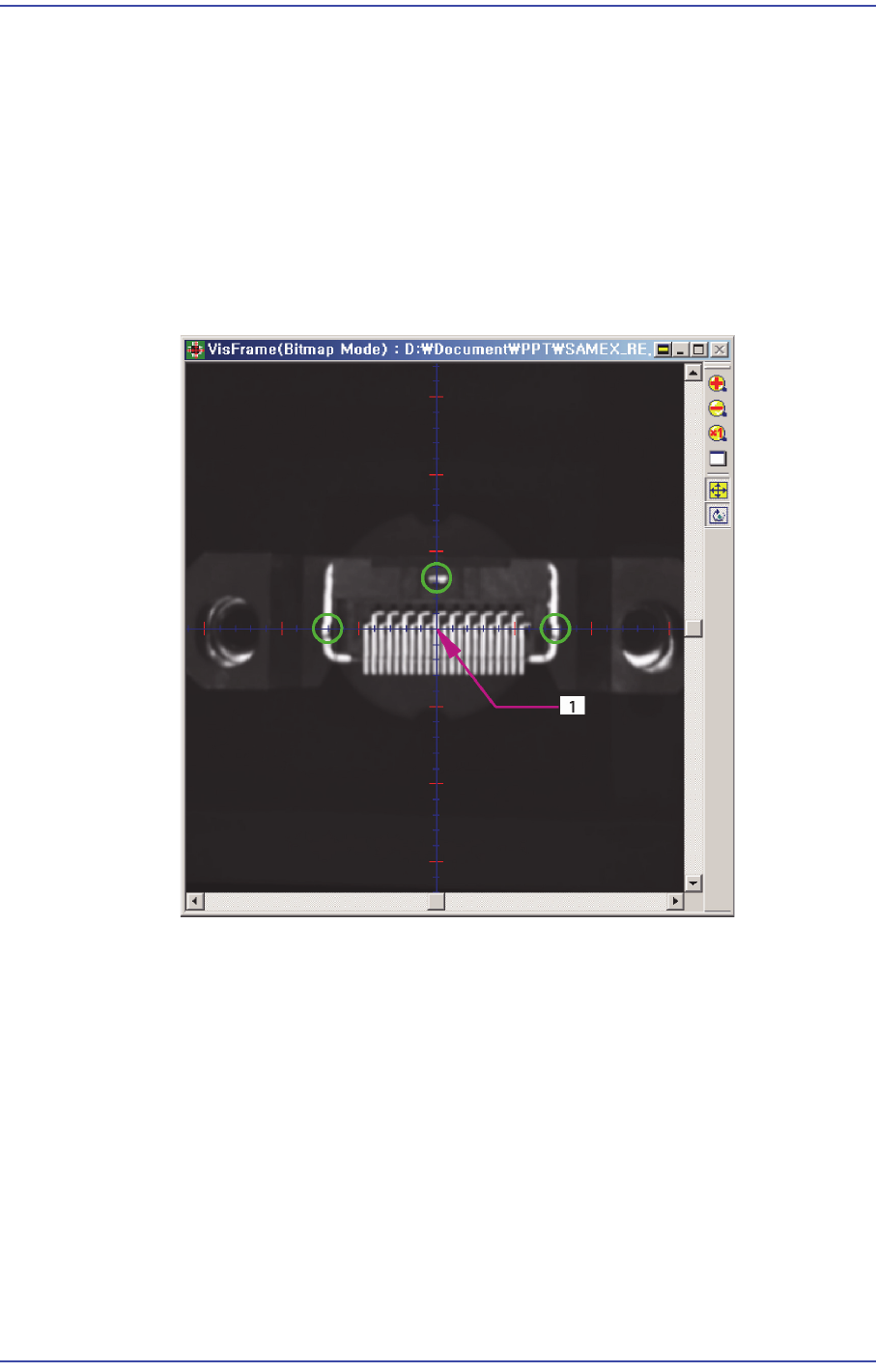 의 삽입되는Pin의 위치가 SMVision창의 십자선에 걸쳐지도록 갠트리를