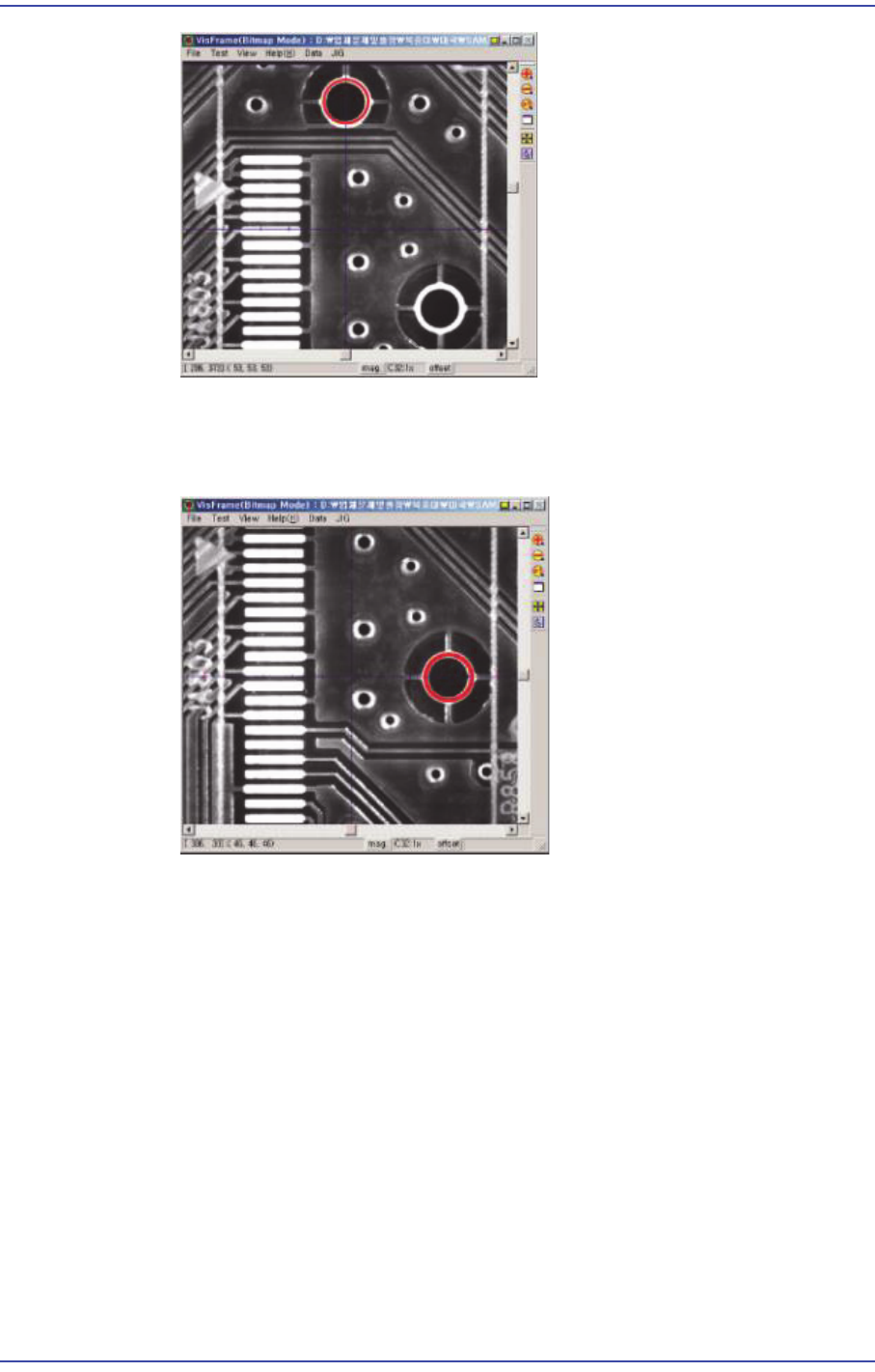 티칭박스를 이용하여Y축 방향으로 피두셜 카메라를 이동시켜 다음의 그림