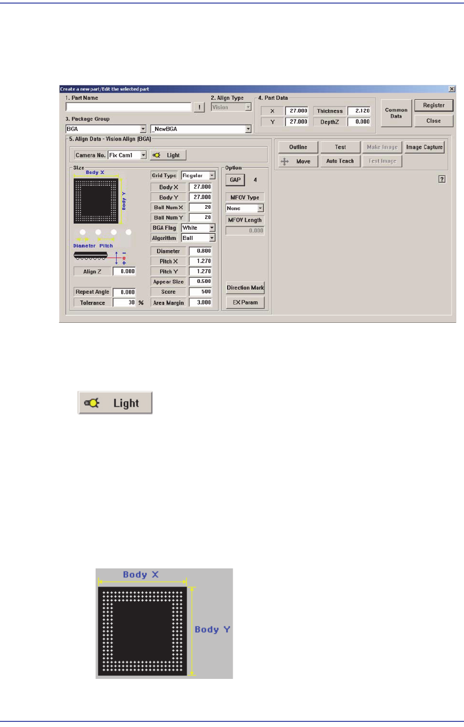 BGA 부품에 관한 Align 데이터를 설정합니다.