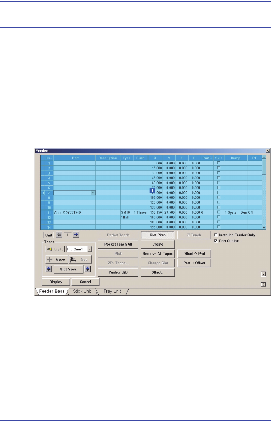 보박스가 표시되는데 “Parts” 대화상자에서 등록된 부품 중 “Tape Feeder”