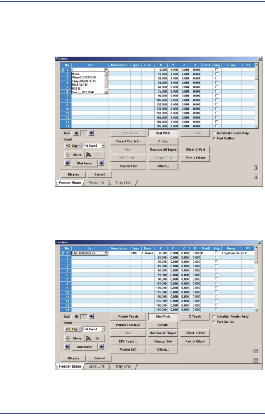 기 위해서 사용됩니다. 각 Feeder에 설치할 부품을 선택하고 흡착점(Pickup Position)