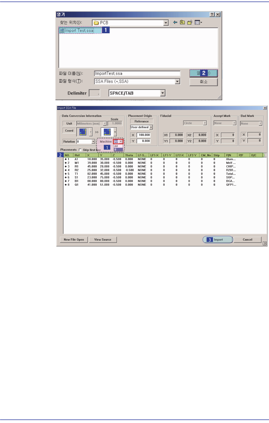 Import 되어진 SSA 파일을 이용해서 작업을 할 장비를 선택하십시오.