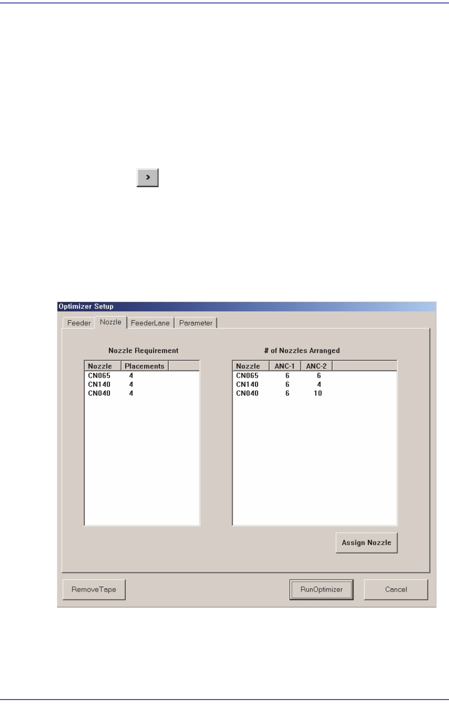 Optimizer는 테이프 피더와 노즐, ANC 등의 배치 위치와 작업의 순서를 최적화하여
