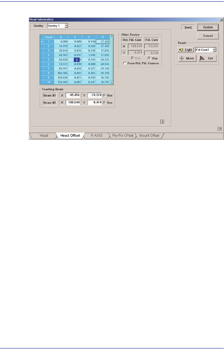 각 Head의 기구적 특성으로 인한 Offset을 설정합니다. 여기서 나타나는 Z, R축을