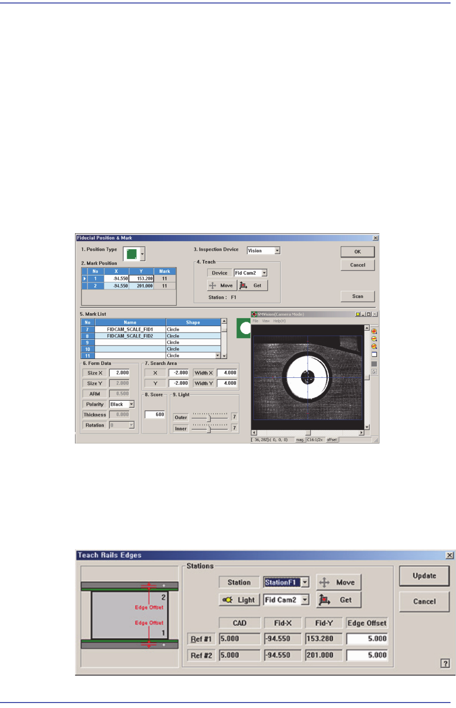Station의 Fiducial Mark들을 티칭합니다. 자세한 사항은 “6.3 Fiducial Mark 설정