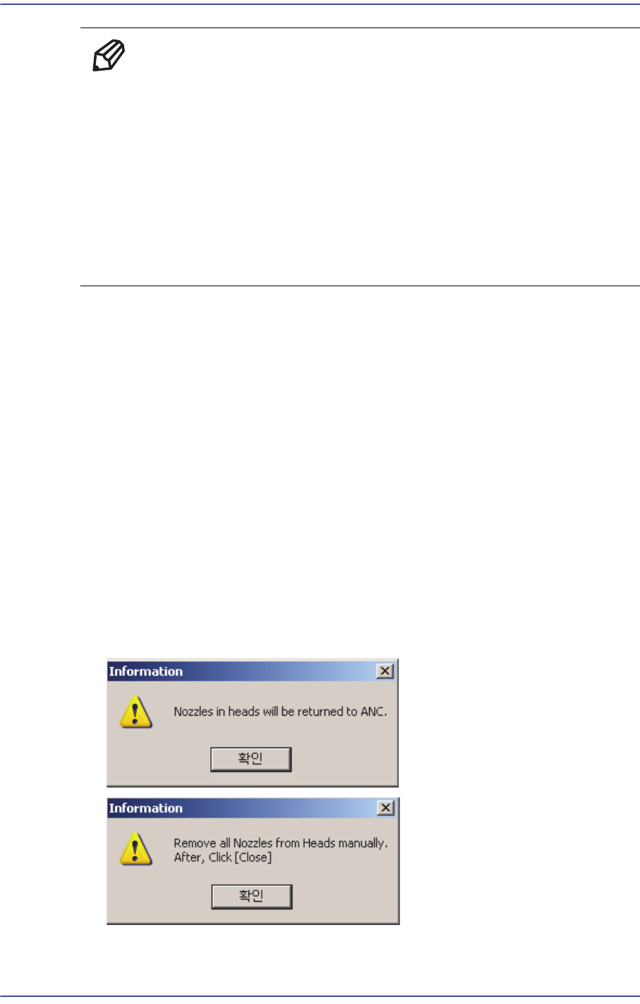 을 클릭하여, 모든 헤드의 노즐 홀더에 삽입된 모든 노즐