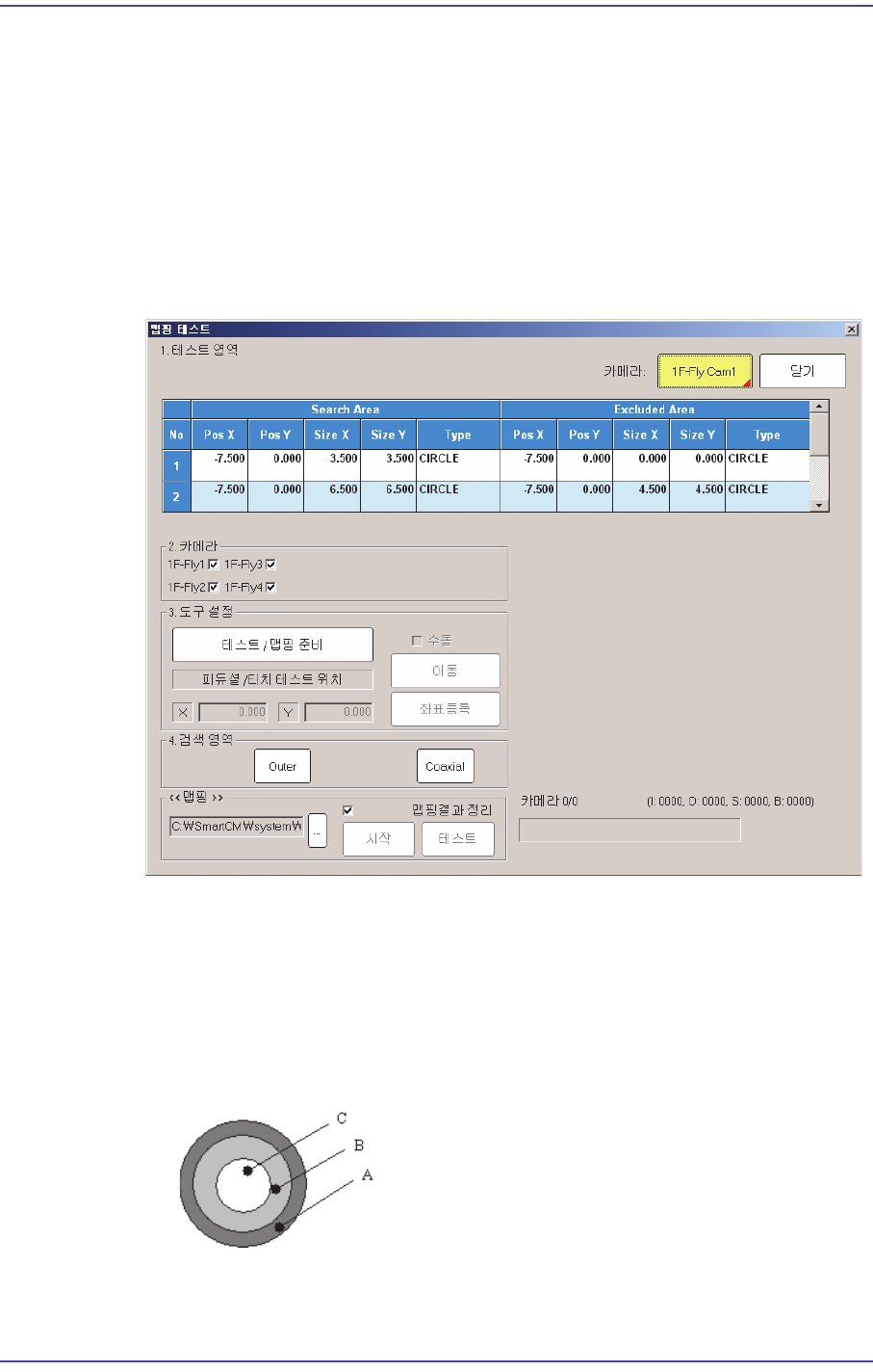 12-56 Samsung Component Place r SM471 Administrator's Guide Test Area2 = Search Area(B) – Excluded Area (C) Test Area3 = Search Area(C) Test Area4 = Test Area1 + Test Area2 + Test Area13 테스트 영역은 전체 3 개의 영역 이 있는데 , A…