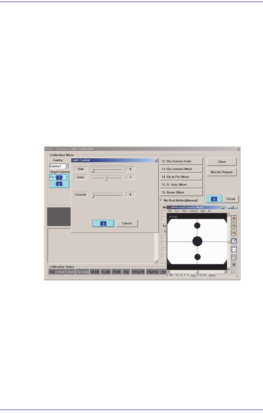 ‘SMVision’ 창에서 보여지는 CNT20 노즐상의 Ficucial Mark가 선명하게 보이