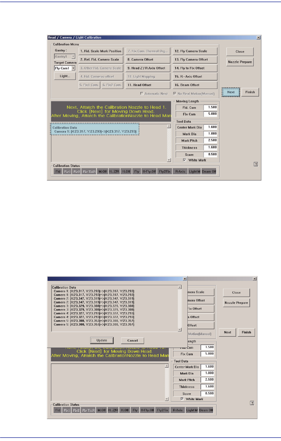 12-68 Samsung Component Place r SM471 Administrator's Guide 10. Calibration 이 완료되면 , 다음 그림과 같이 결과값을 보여줍니다 . <Next> 버튼을 클릭하십시오 . 11 . “ Next, Remove the Calibration No zzle From Head 1. Click [Next] for Moving …