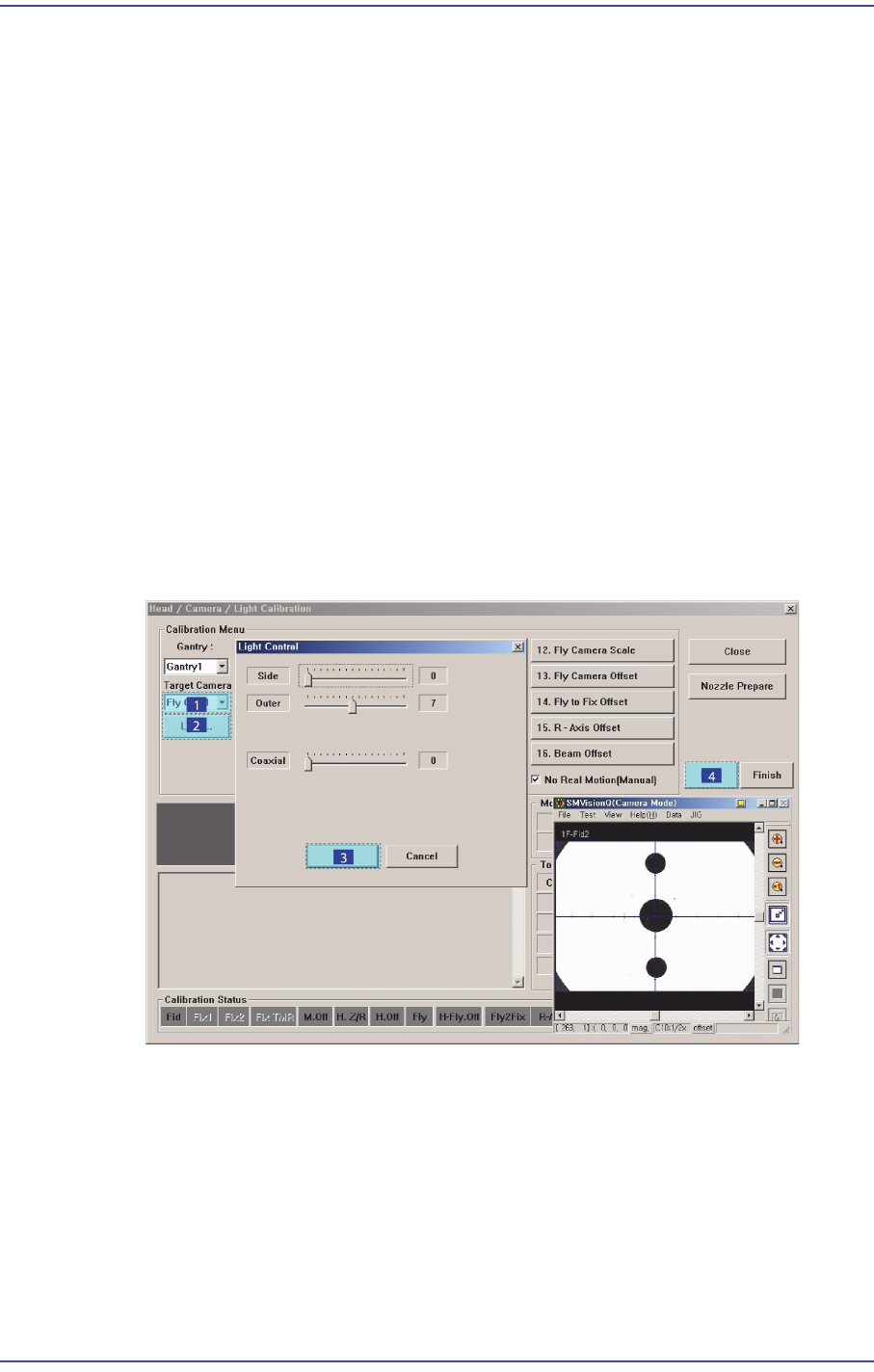 Calibration Tool상의 Ficucial Mark가 선명하게 보이도록 조명의 밝기를 조정한