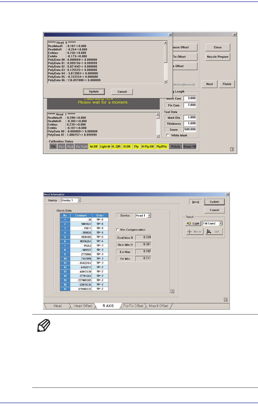 11. 모든 헤드에 대해서 Calibration 절차가 정상적으로 완료되면 다음 그림과 같은
