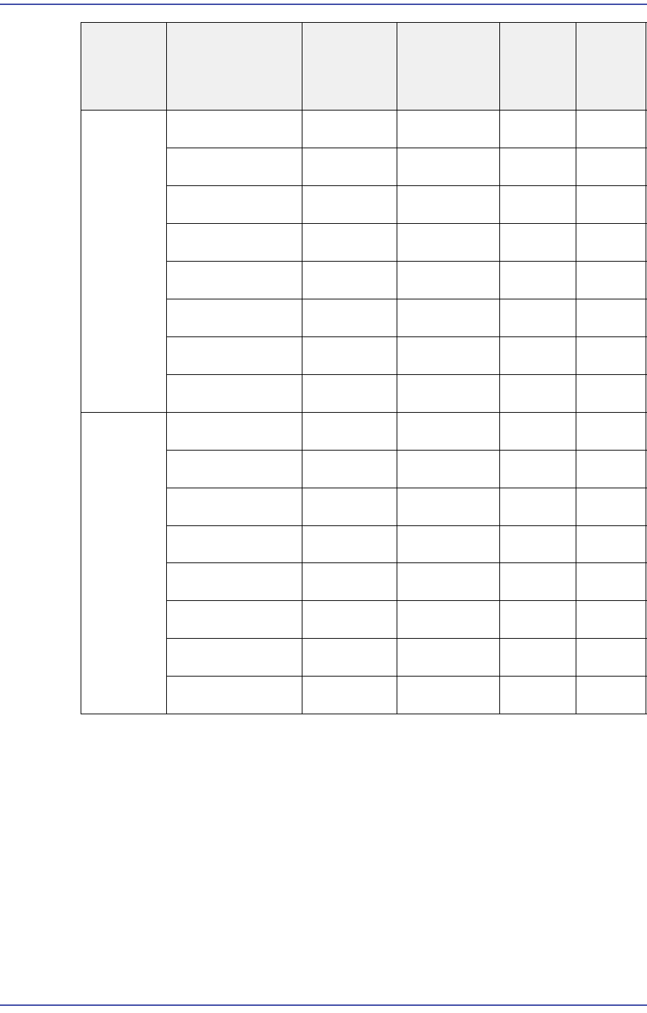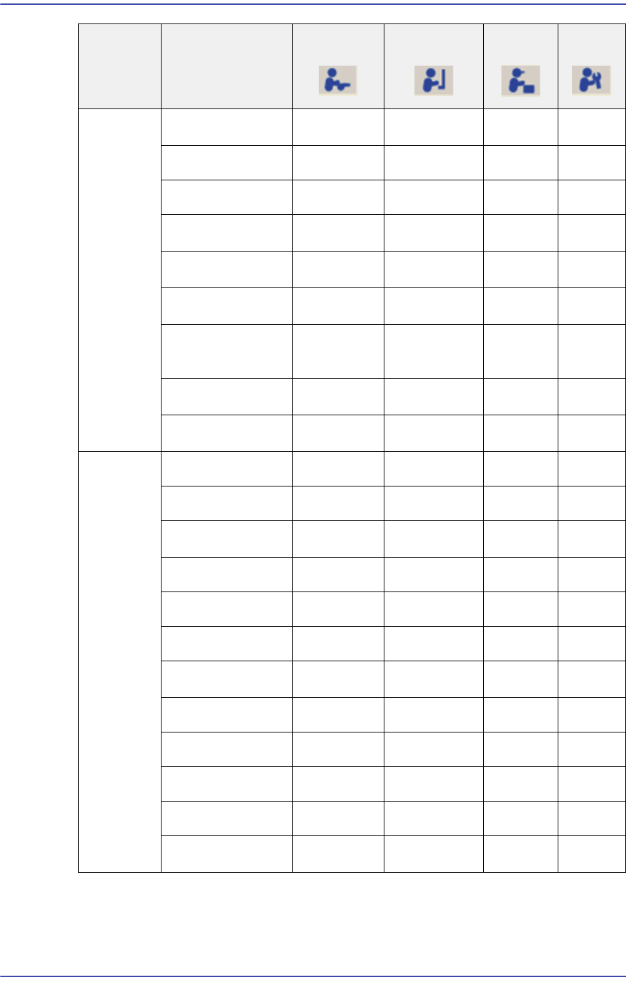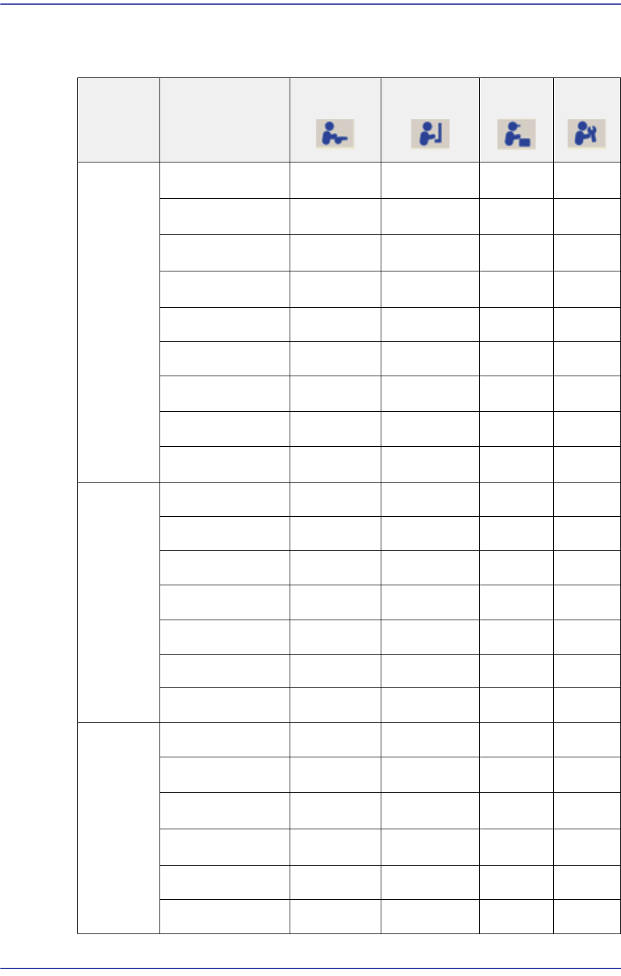 다음은 사용자별로 MMI 메뉴에 대한 권한을 나타내는 표입니다.