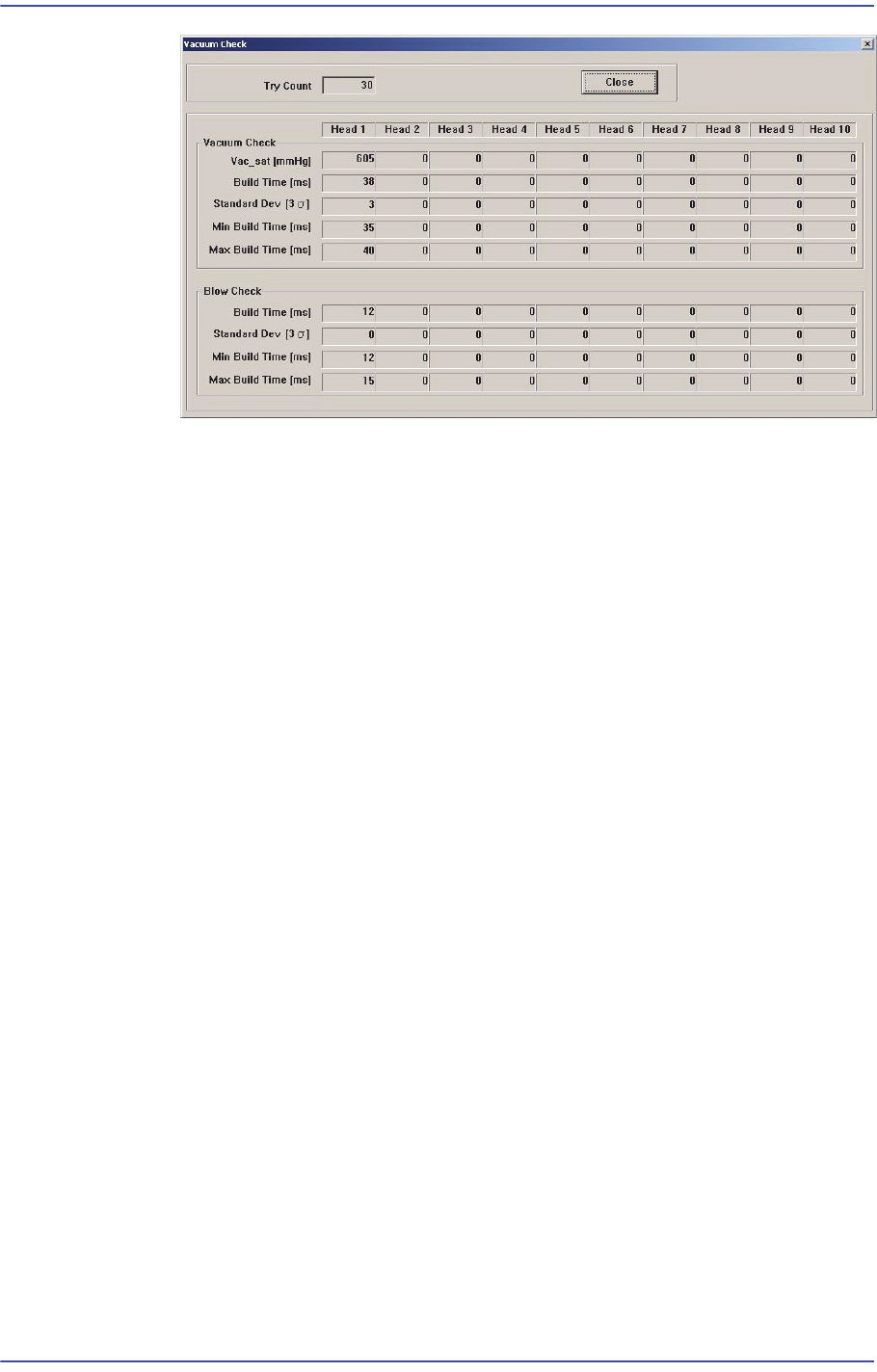 14-11 Diagnosis 이 버튼을 클릭하면 결과 데이터를 텍스트파일로 저장할 경로를 선택할 수 있는 대화상자가 실행됩니다 . < Vacuum Pressure> 진공형성 (Vacuum On) 동작 수행 후 해당 헤드 의 진공도가 90% 수준에 도달 했을 때의 진공 수준을 그래프 형태로 보여줍니다 . X 축 진공형성 (Vacuum On) 동작 수행 후 헤드 의 평균적인 진…