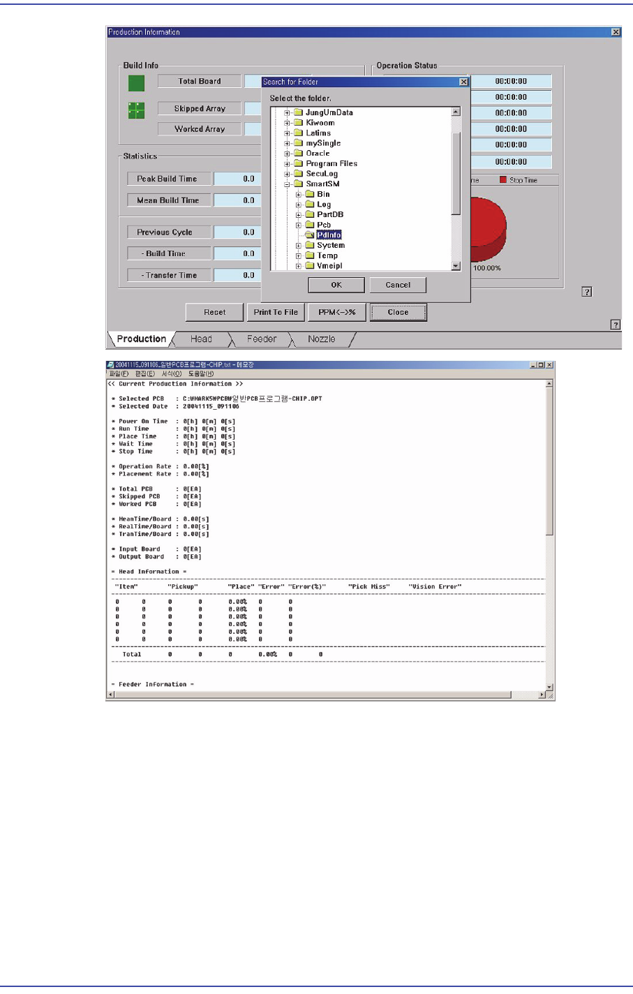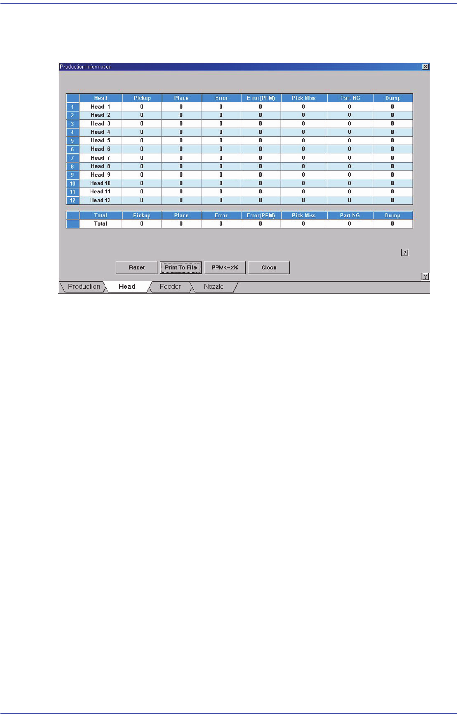 각Head의 작업정보를 표시하고, 장착과 관련된 전체 통계정보를 보여줍니다.