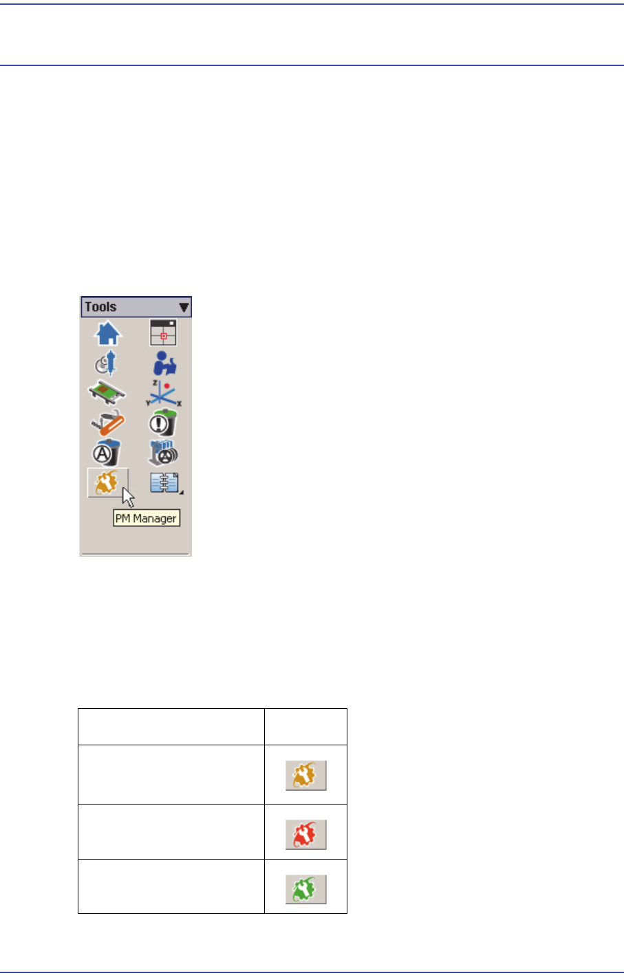 17-1 PM Manager 제 17 장 . PM Manager PM Manager 는 장비를 운용하는 응용프로그램인 MMI(Man-Machine Interface) 에서 장비의 유지보수를 위해 사용하는 관리메뉴입 니다 . PM Manager 를 통해 점검해야 할 항목과 점검 주기를 확인하고 , 예약 점검 기능을 통해 보다 효율적으로 장비를 관 리할 수 있습니다 . 17.1. PM Manag…