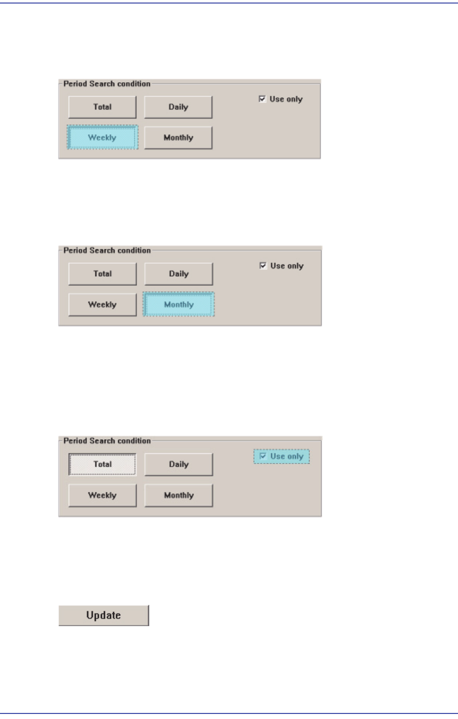 <Period Search condition> 영역에서 <Total> 버튼을 선택하면 일간 , 주간, 월간 점검