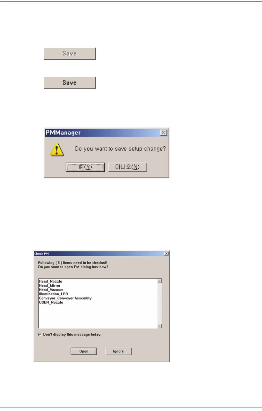 Setup 화면에서 변경된 설정사항이 있으면 <Save> 버튼이 활성화됩니다.