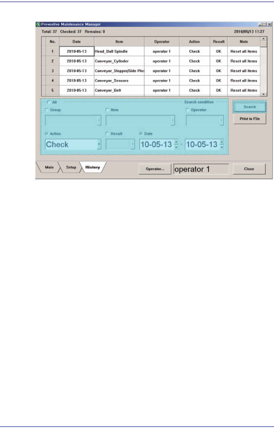 History 화면에서는 모든 점검이력을 조회할 수 있습니다 .