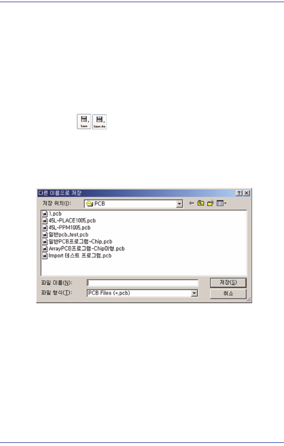 현재 PCB관련 설정을 하는 중이거나 완료한 파일을 저장하기 위해서 사용합니다 .