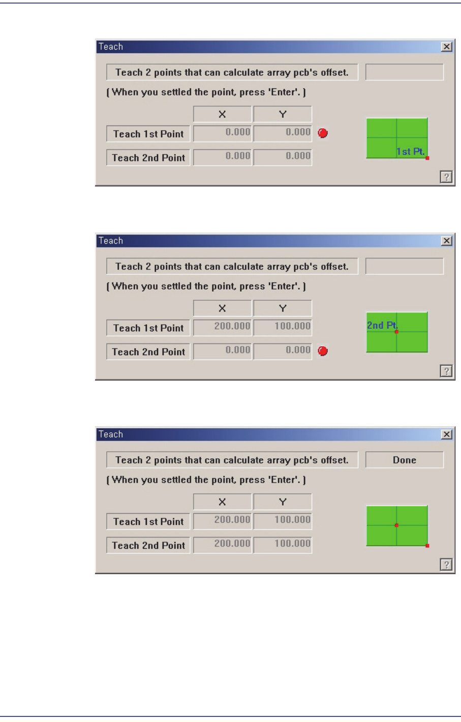 를 누르면 Array PCB오프셋 티칭이 완료됩니다.