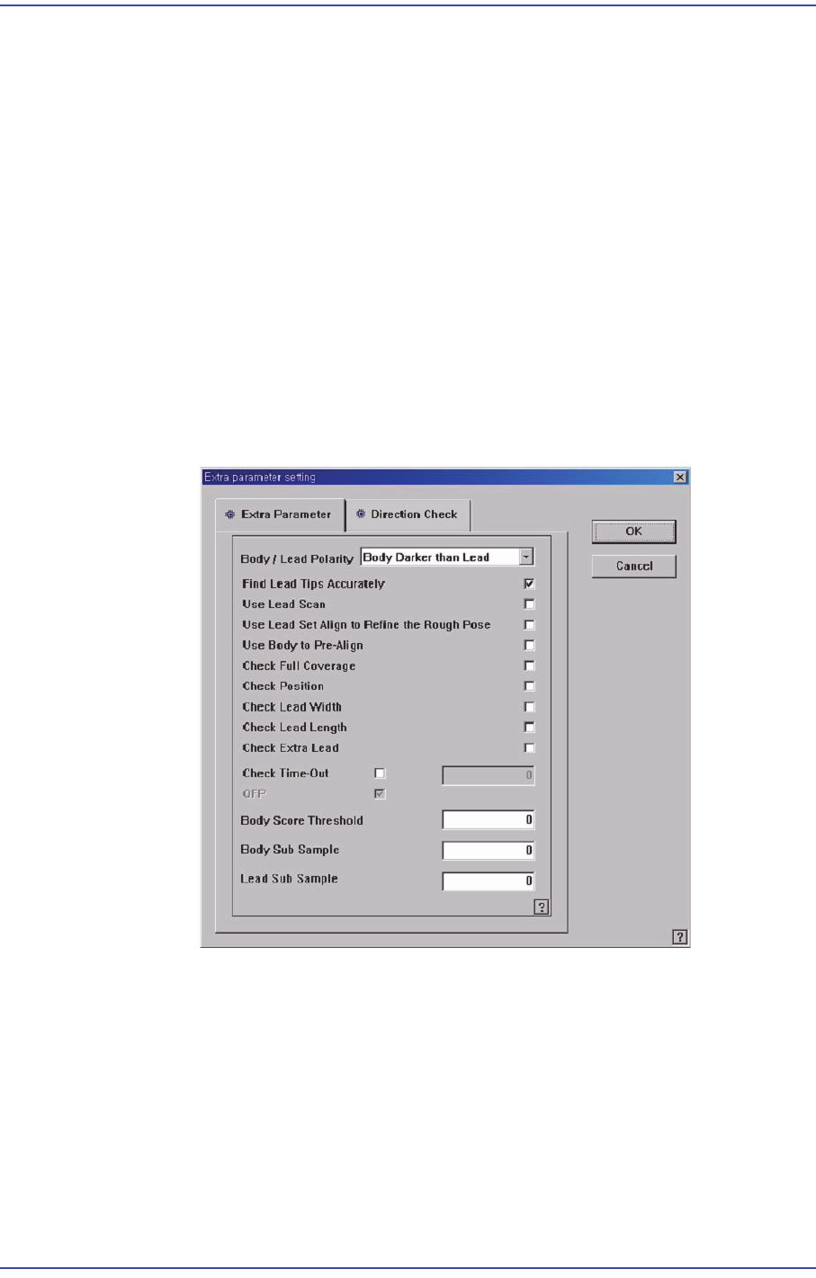 7-28 Samsung Component Place r SM471 Administrator's Guide 향에만 리드가 존재하고 , 리드의 개수가 8 개를 넘는 컨넥터의 경우 , 이 항목을 체크하면 Y 방 향으로 인식 정도를 높여줍니다 . <Use Lead Scan> 체크박스 ‘리드 검색’ 기능을 이용하여 리드를 찾을 때 사용합니다 . <Use Lead Set…