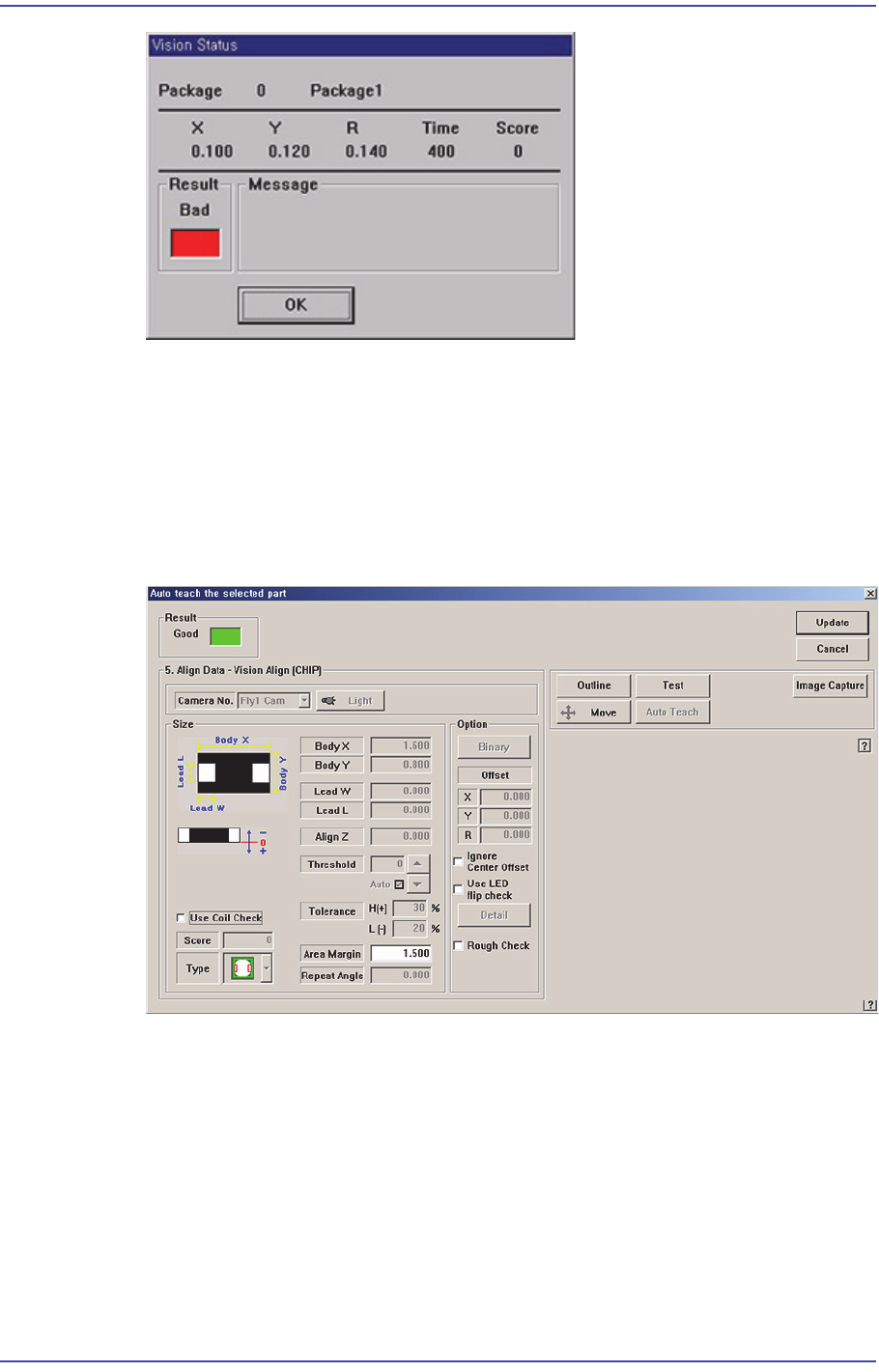 Auto Teach 결과데이터를 표시합니다 . Auto Teach에 실패하면 다음과 같은