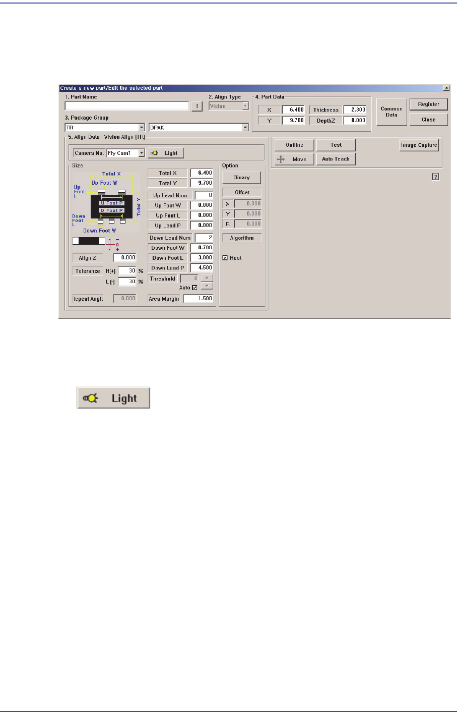 TR 부품에 관한 Align 데이터를 설정합니다.