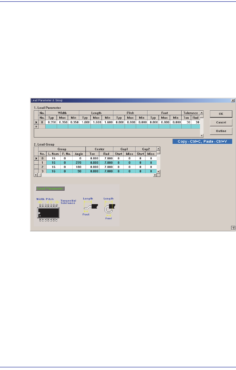 Lead의 길이방향으로 허용되는 공차를 설정합니다. <Lead Length>에 대한