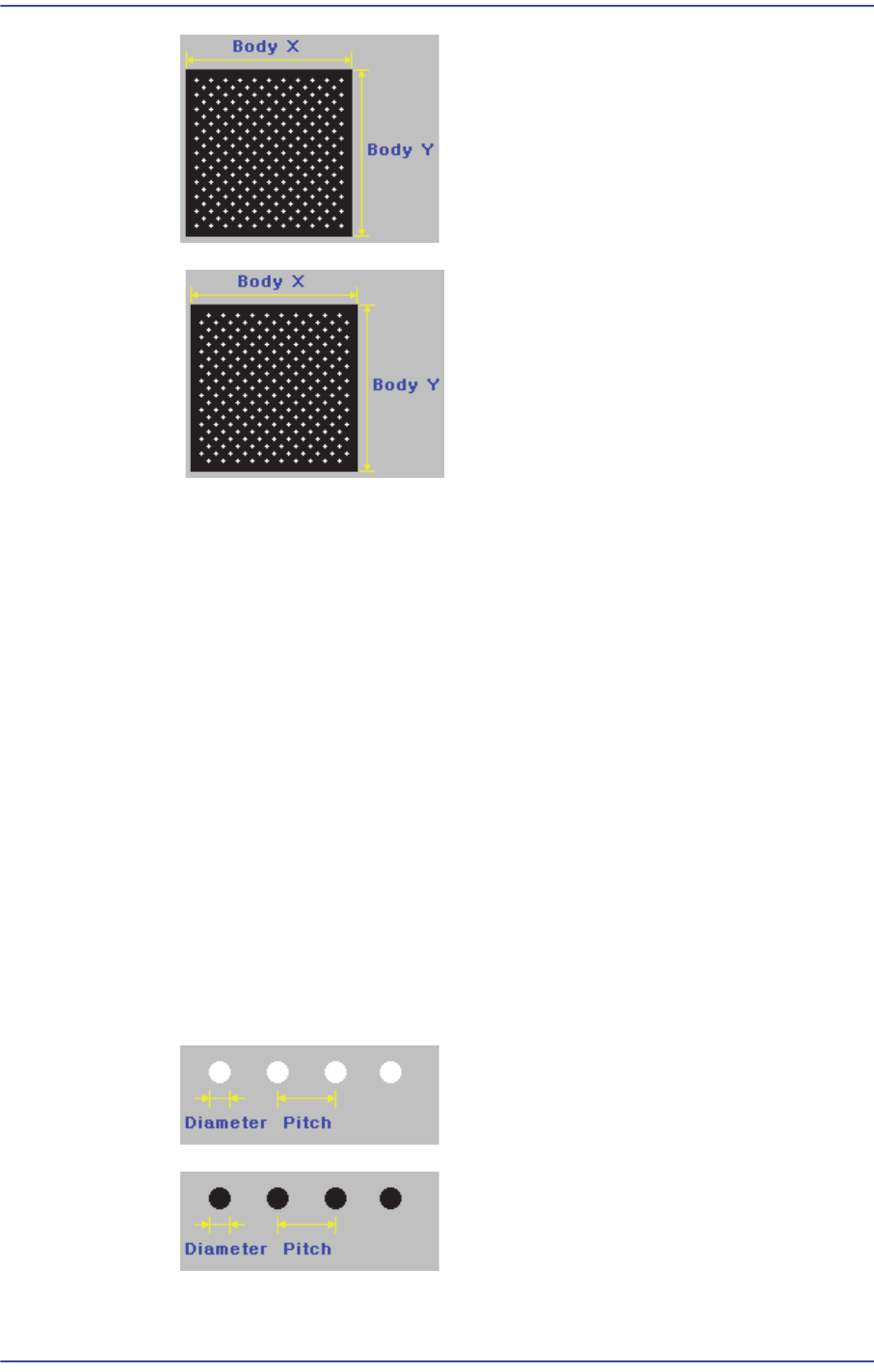 7-71 부품 등록 W & B (White and Black): Ball 이 중앙은 검은 색 이고 , 외각 은 흰색으로 보이는 경우입니다 . <Algorithm> 에디트 박스 BGA 부품 인식 알고리 즘을 선택합니다 . 선택 가능한 알고리즘은 다음과 같 습니다 . Ball: Ball 만을 이 용하여 인식합니다 . PBGA 처럼 Ball 의 구분이 명확한 BGA 에 사용합…