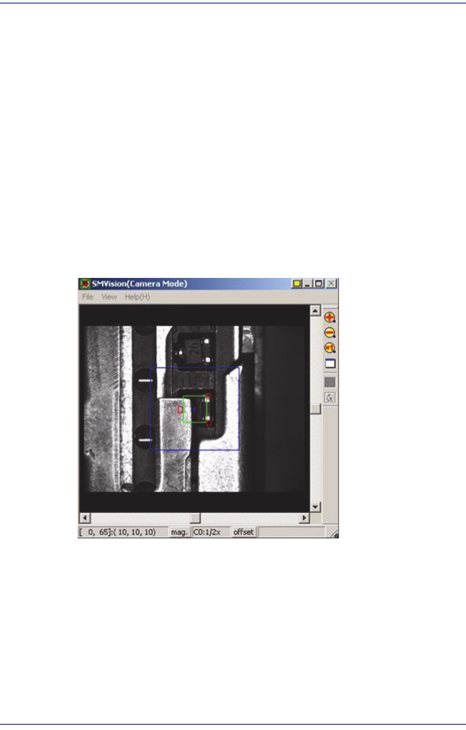 당 피더의 흡착위치로 이동하면, SMVision 창에 해당 부품이 흡착되어지는 각