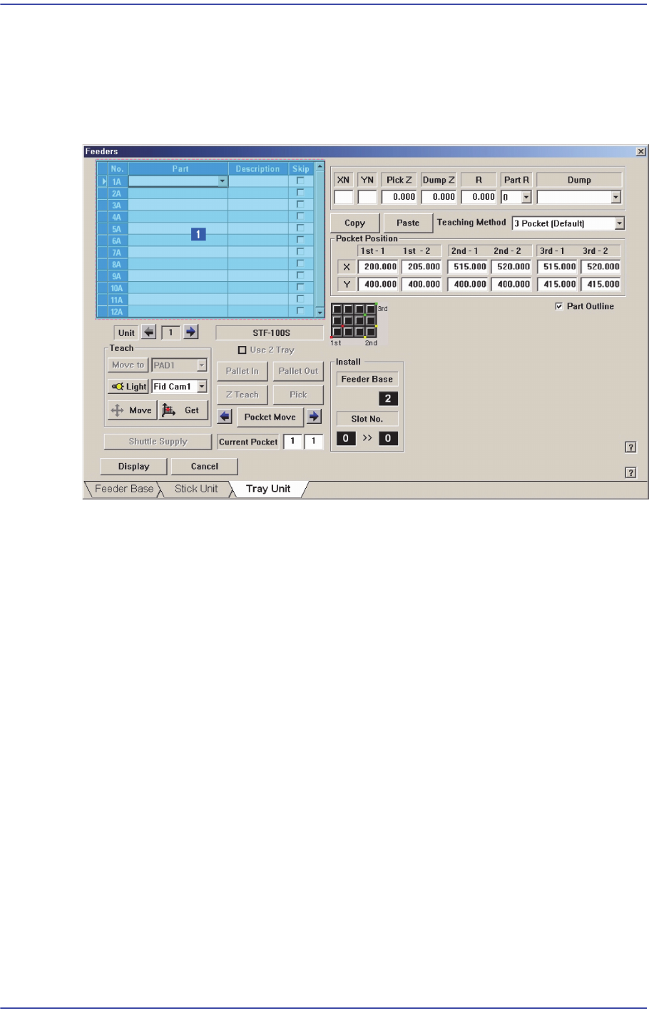 Tray Feeder의 각종 데이터를 설정합니다. “Tray Unit”을 선택했을 때, 초기의 화면