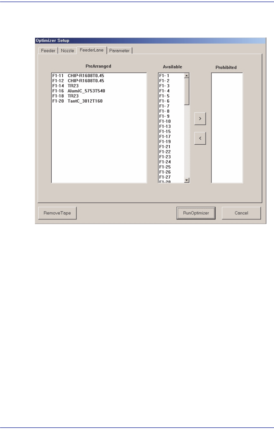 Optimizer에서 피더배치에 이용할 각각의 피더베이스 슬롯에 대해 설정하는 화면입