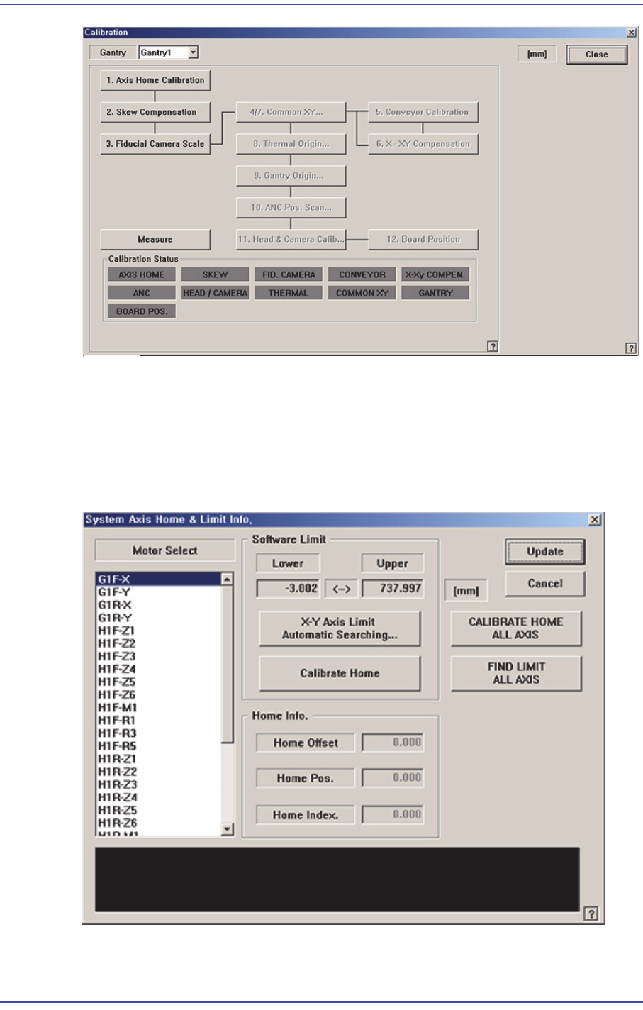 12-14 Samsung Component Place r SM471 Administrator's Guide 캘리브레이션을 할 구동축을 선택합 니다 . 선택 가능한 구동축은 다음과 같습니 다 . G1F-X: 전면 Gantry 의 X 축 G1F-Y : 전면 Gantry 의 Y 축 G1R-X: 후면 Gantry 의 X 축 G1R-Y : 후면 Gantry 의 Y 축 H1F-Z1: 전면 Ga…