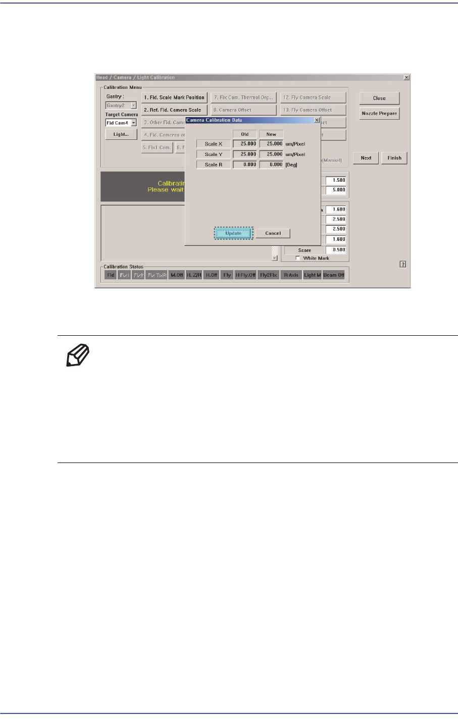 결과값을 보여줍니다. 새로운 Calibration 값을 적용하려면 <Update> 버튼을