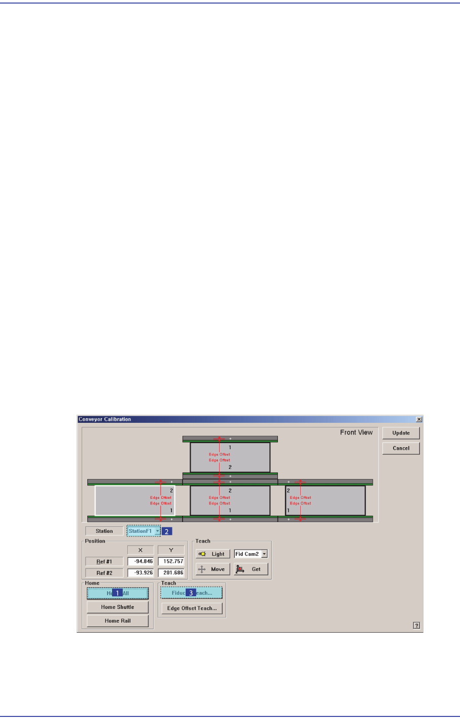 12-30 Samsung Component Place r SM471 Administrator's Guide 5. <Edge Offset Teach … > 버튼을 클릭하십시오 . 6. <Station s> 콤보박 스에서 캘리브레이션 할 St ation 을 선택하십시 오 . 7. Ref # 1 에 해당하 는 <Edge Offset> 에디트박스를 마우스포인…