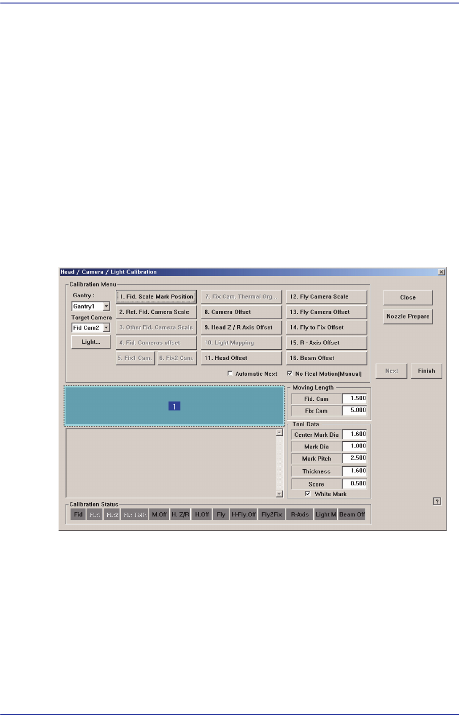 12-43 Machine Calibration 12.3.9. ANC Pos. Scan ANC 상면의 Fiducial Mark 2 점을 티칭합니다 . 전면 및 후면 ANC 의 상대적인 좌표 계를 보상합니다 . 자세한 사항 은 “ 6.3 Fiducial Mark 설정” 을 참조하시기 바랍니다 .